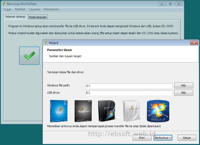 - Memindah installasi windows XP/2003/Vista/2008/7/8 dari CD/DVD ke USB Flash drive