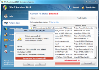 Ketika antivirus palsu terpasang, biasanya akan muncul pesan peringatan bahwa komputer kemungkinan terinfeksi virus, dan minta dilakukan scan. Ketika kita klik scan, antivirus palsu ini menampilkan proses scanning komputer, dan hasilnya menunjukkan bahwa komputer terinfeksi virus. selanjutnya untuk menghilangkan virus tersebut, biasanya kita harus membeli lisensi atau membayar sejumlah uang untuk antivirus palsu tersebut.